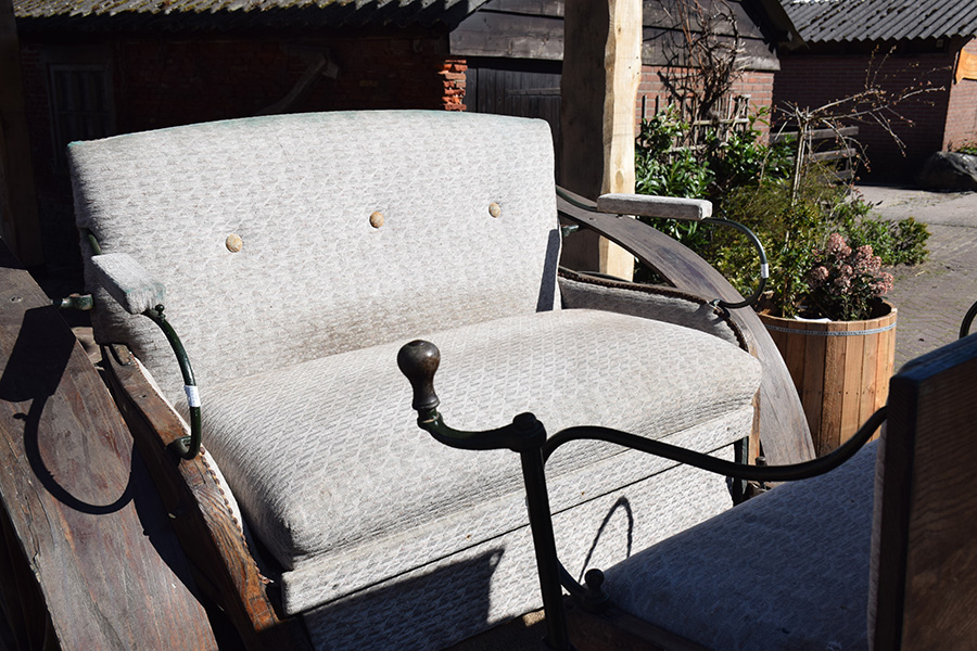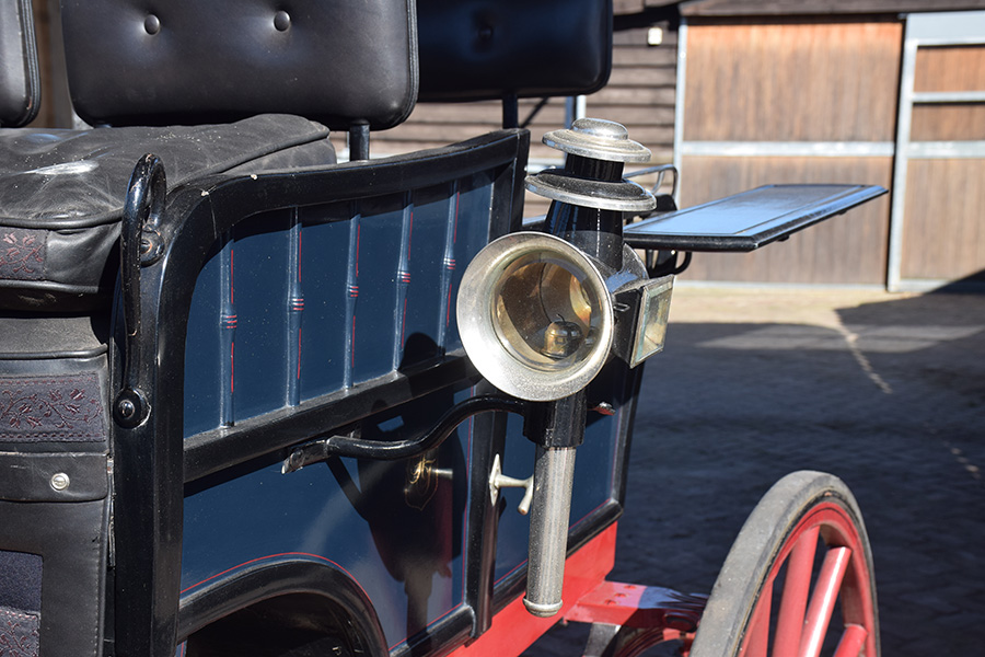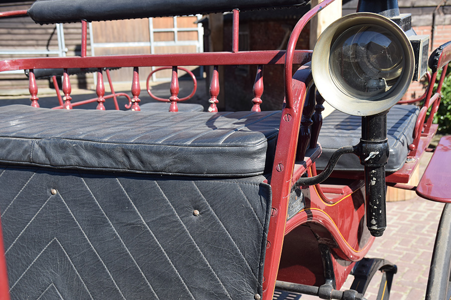 In goede staat verkerende Duitse zelfvaarder. Dit open rijtuig is voorzien van fraai lichte stoffering. Geschikt voor een enkelspan. Vraagprijs: € 650,-